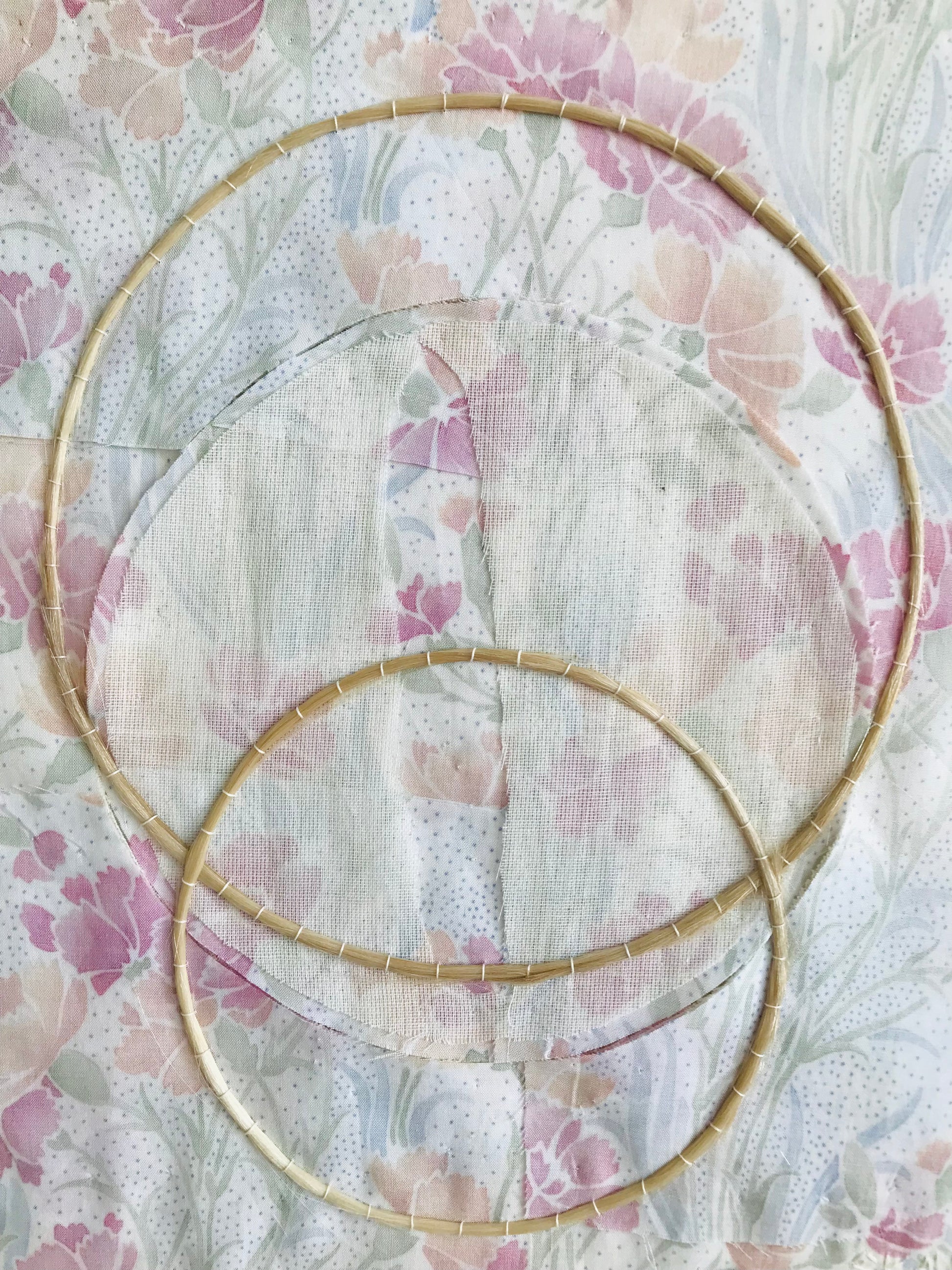 Tissu de Liberty, 2 cercles de cheveux humain, tissu étamine.
