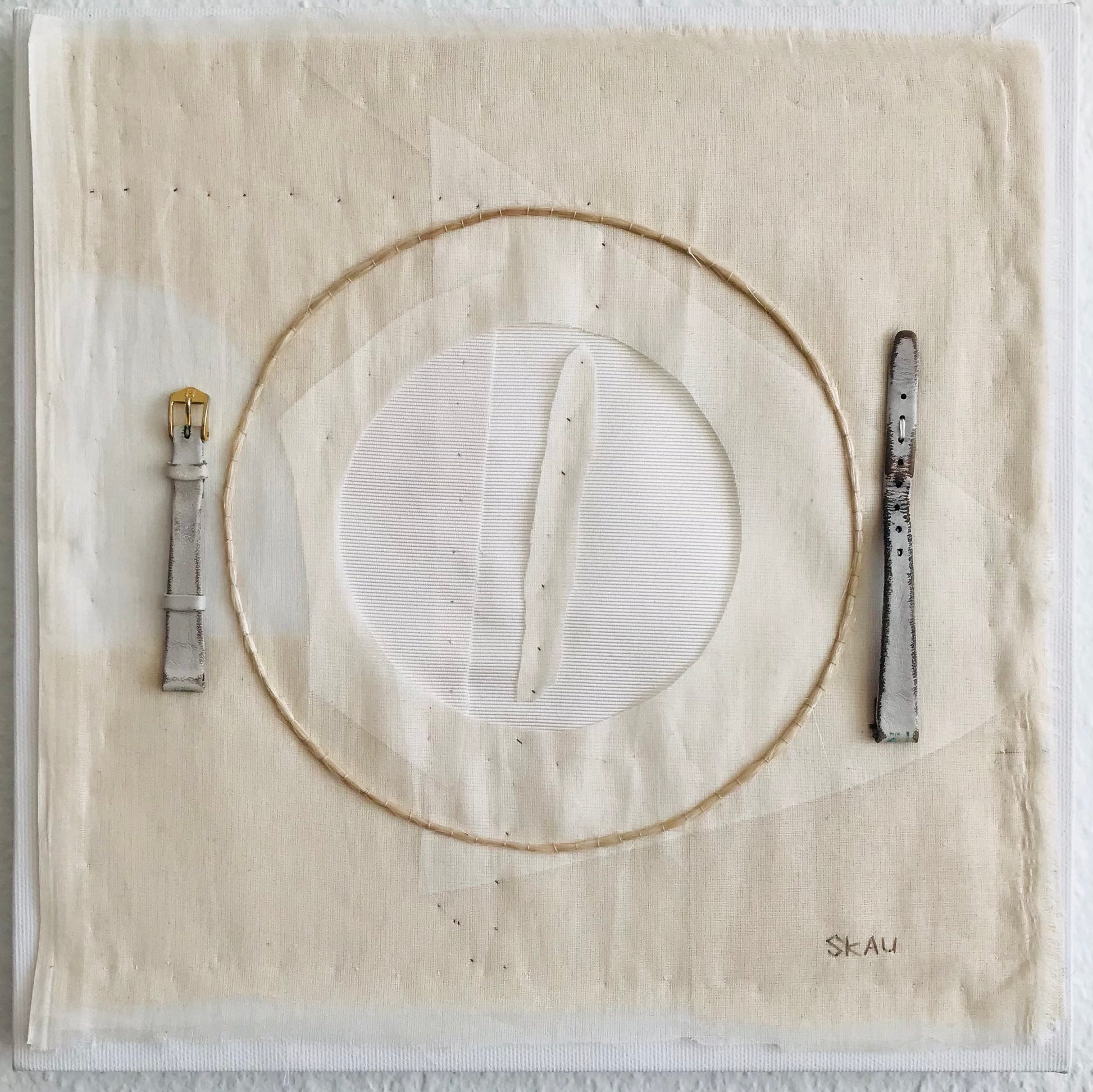 Travaux d’aiguille, tissu, cheveux humains, fil à coudre, bracelet de montre.