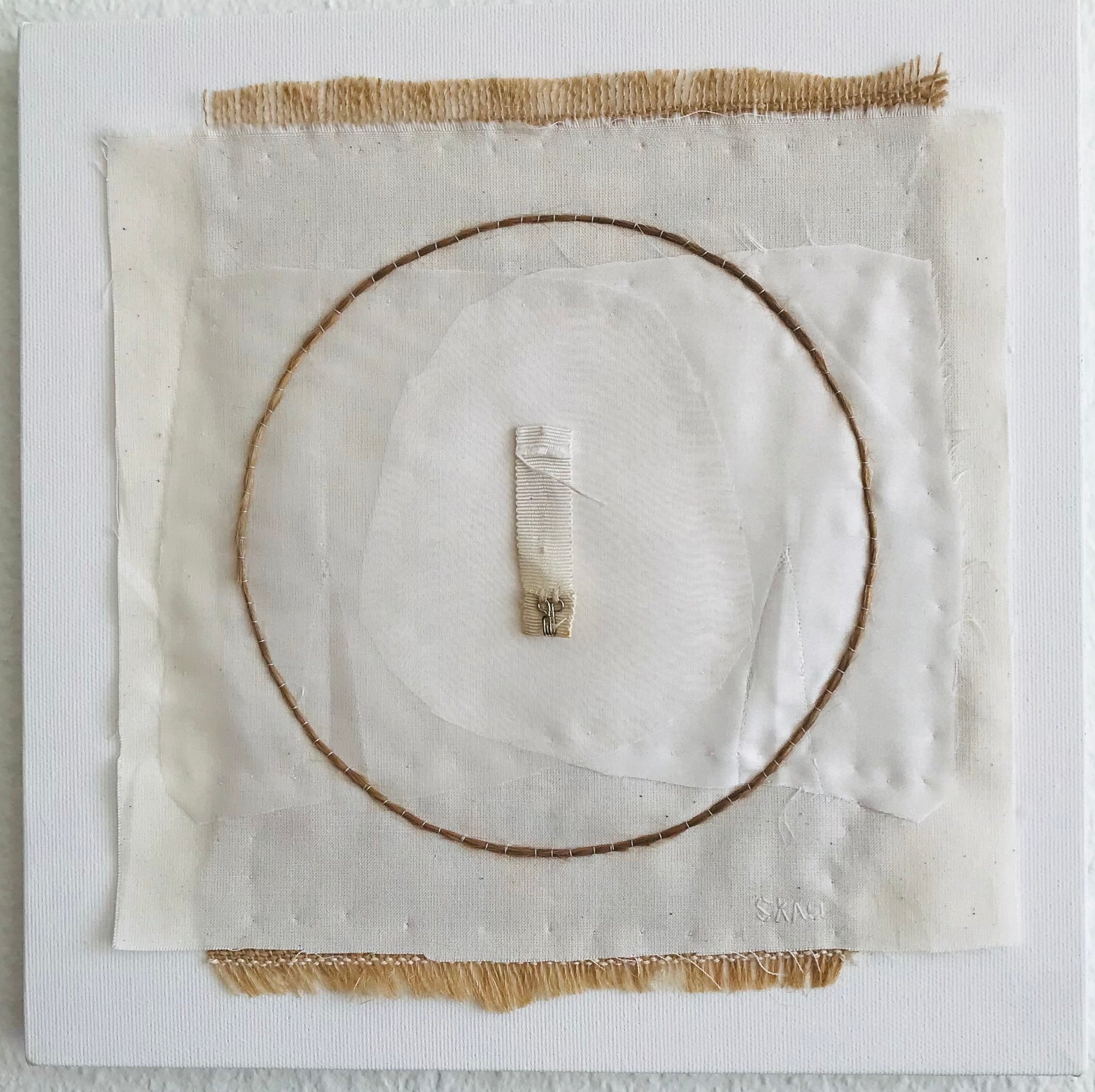 Travaux d’aiguille, tissu, cheveux humains, fil à coudre, une bretelle de robe.
