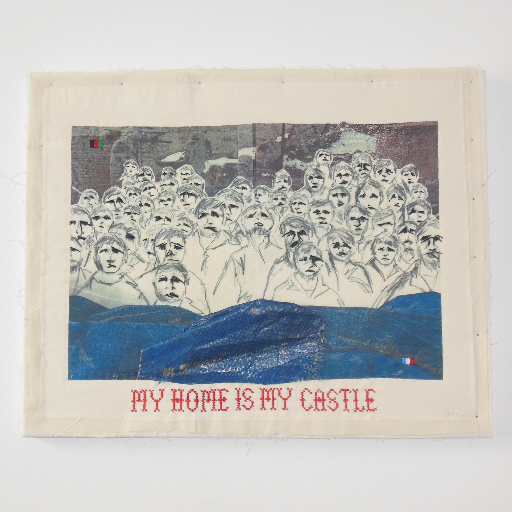 Broderie, impression, tissu et toile plastique.