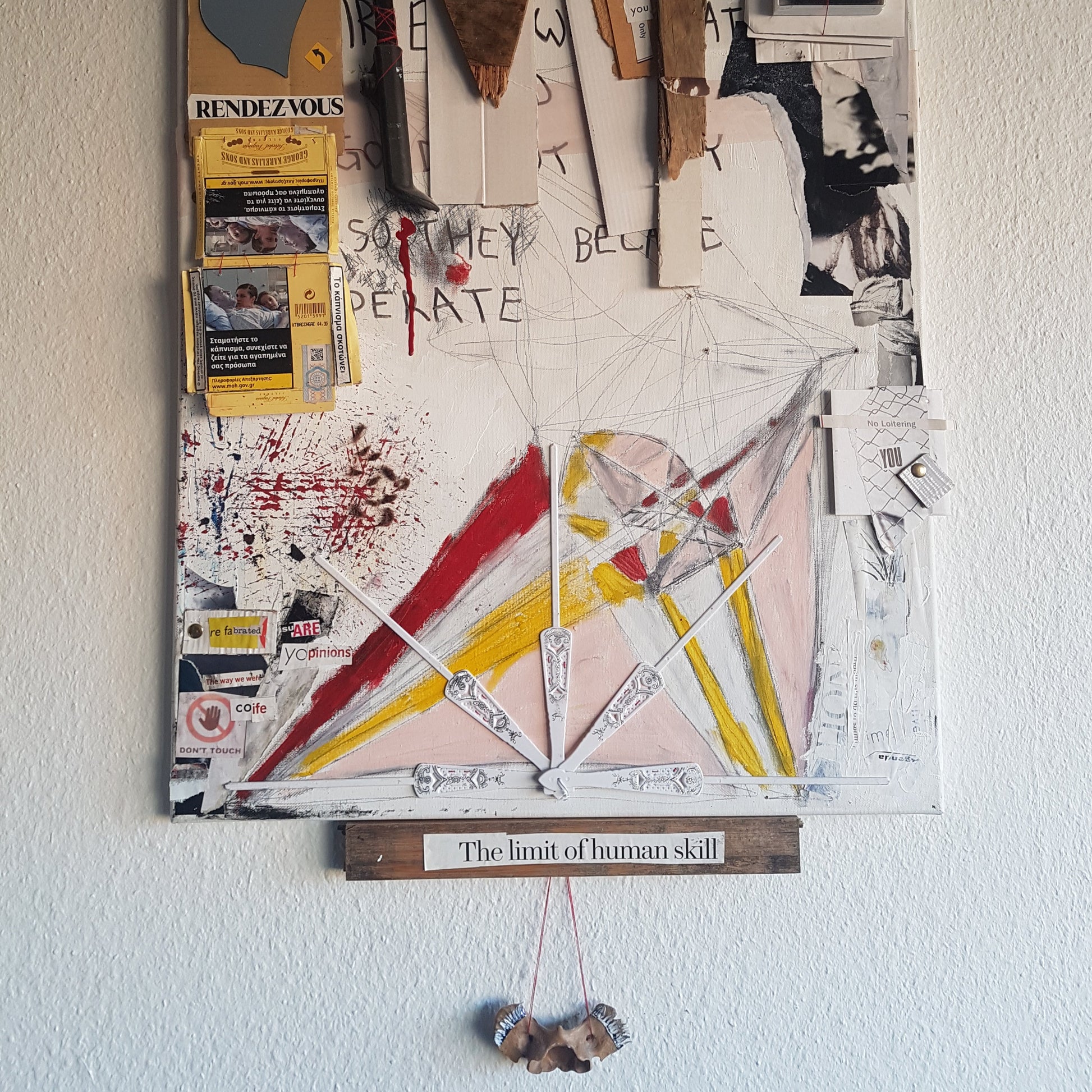 Inspiré par Raschenberg, des objets trouvés dans les rues de Copenhague. Des mots de magazines sont découpés et assemblés pour former de nouveaux mots.